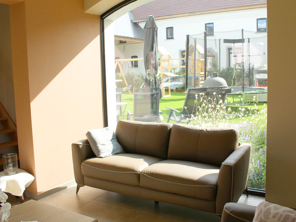 Gezellige leefruimte met comfortabele zithoek en eethoek