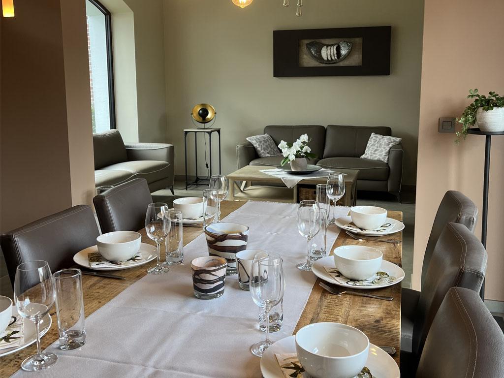 Gezellige leefruimte met comfortabele zithoek en eethoek